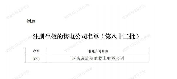 河南康派智能技術有限公司,在河南省擁有合法售電經營資格,并具有國家相關法規及文件所規定的售電設施、場所和專業能力。作為您身邊的能源服務專家,康派智能專注于通過電力交易服務、智能微電網投資建設等手段,為企業提供全方位的能源解決方案,有效降低用能成本,助力企業實現綠色低碳轉型。
